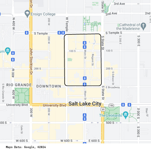 - WALKING DISTANCE: About 1 mile around downtown Salt Lake City.