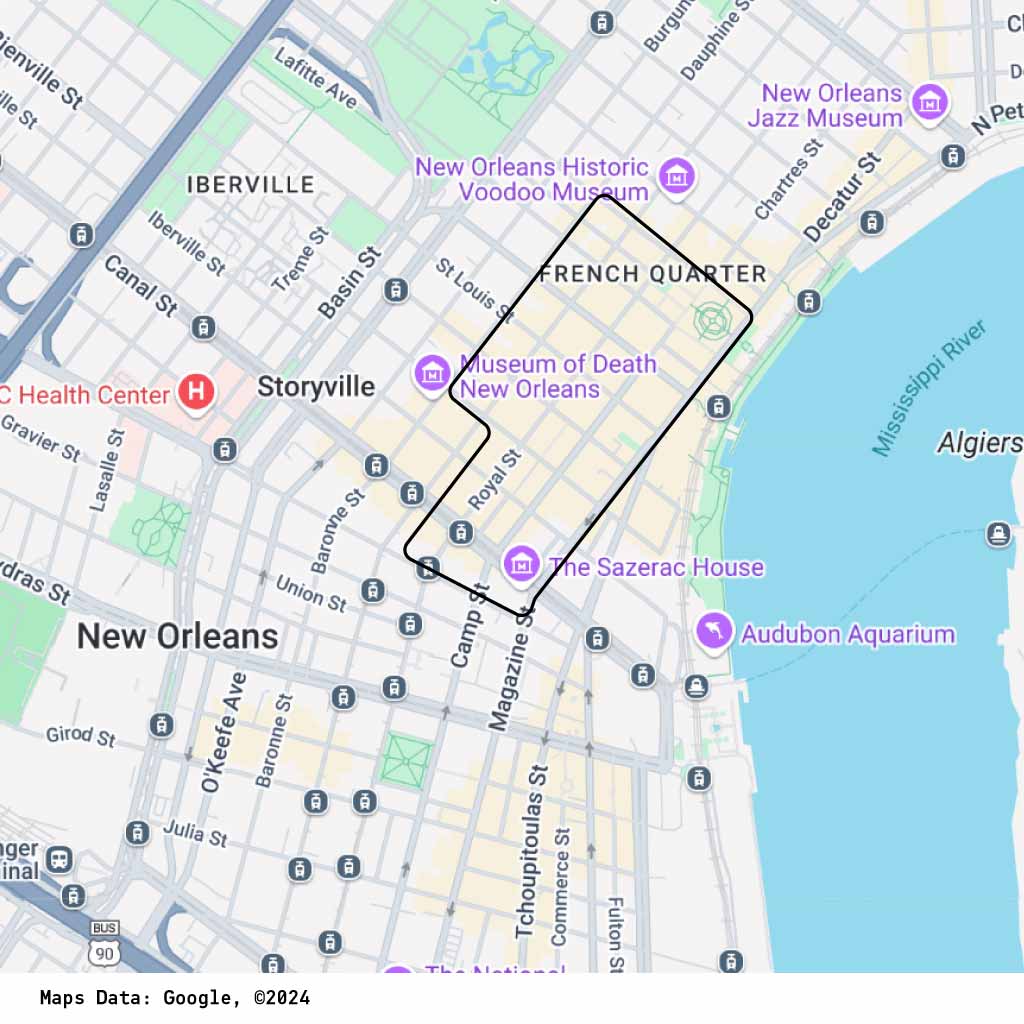 - WALKING DISTANCE: About 1.5 miles around the French Quarter in New Orleans