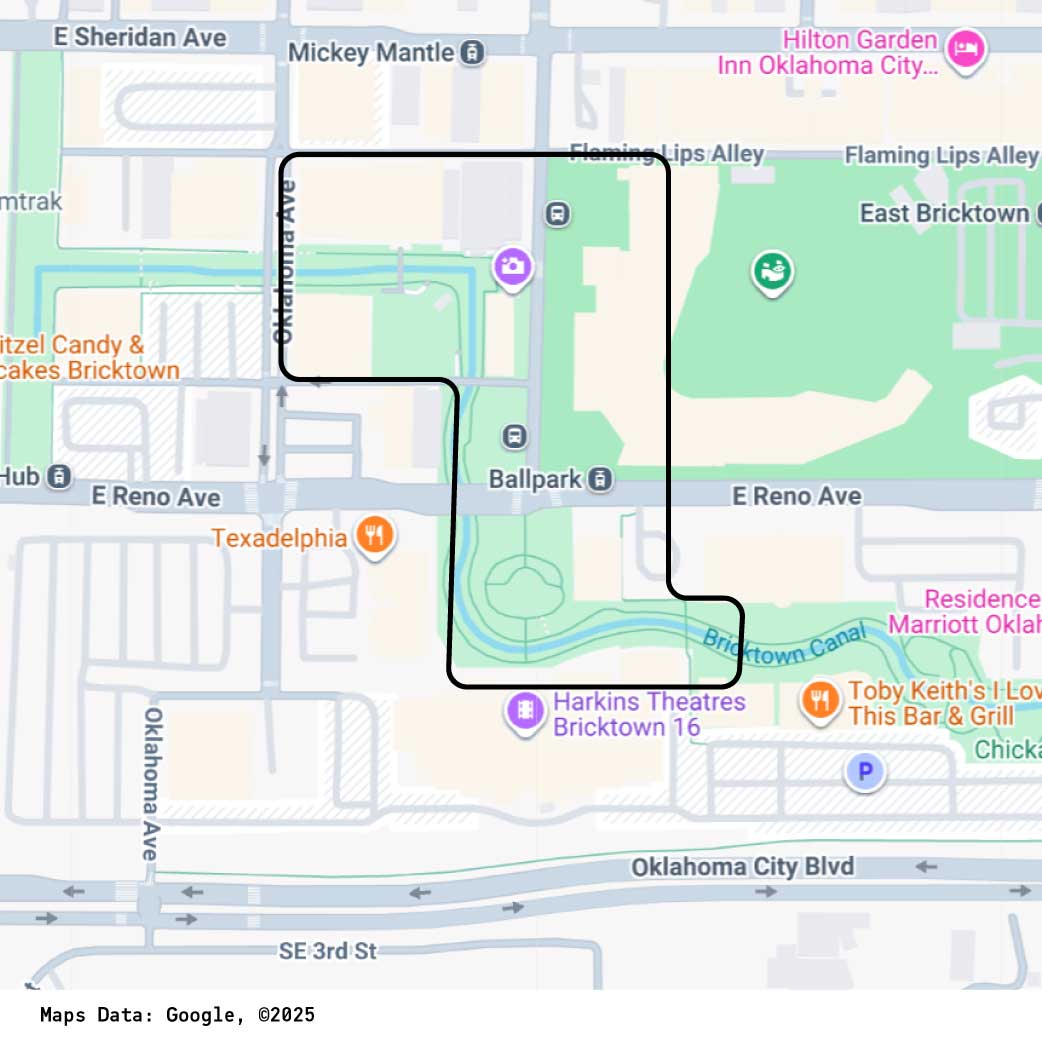 • WALKING DISTANCE: About 1.5 miles around Oklahoma City