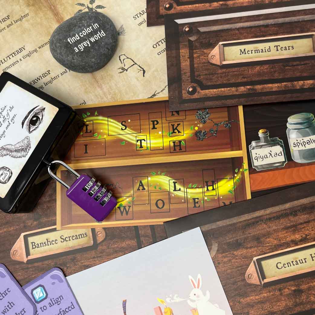 - Other fun clue items, like an engraved stone and puzzle pieces