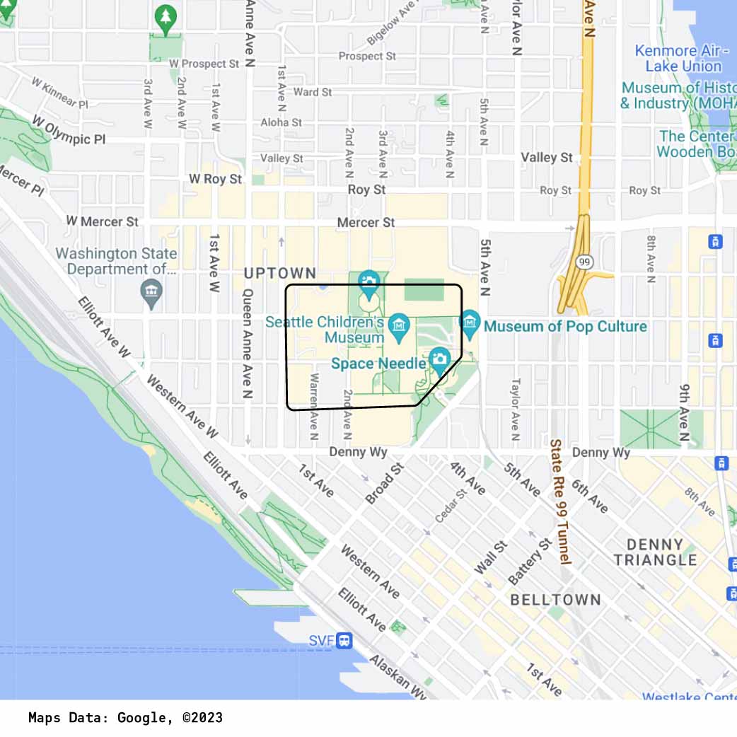 - WALKING DISTANCE: About a half mile around Seattle Center