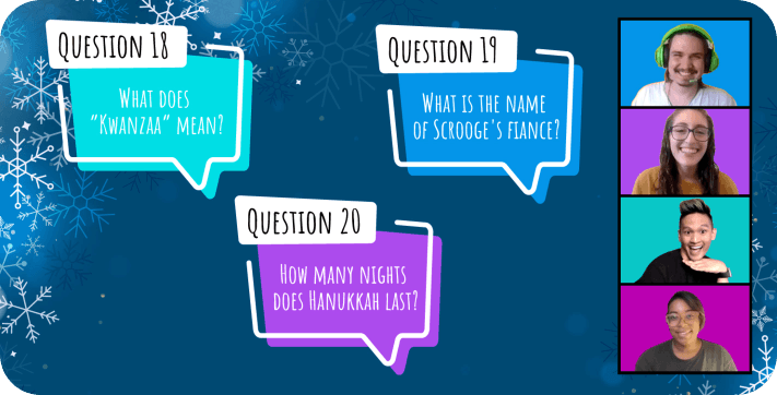 However, suppose you want to tailor your virtual holiday events to a specific celebration, like a virtual office Christmas party. In that case, we offer specific holiday-themed games to add that extra Christmas cheer.